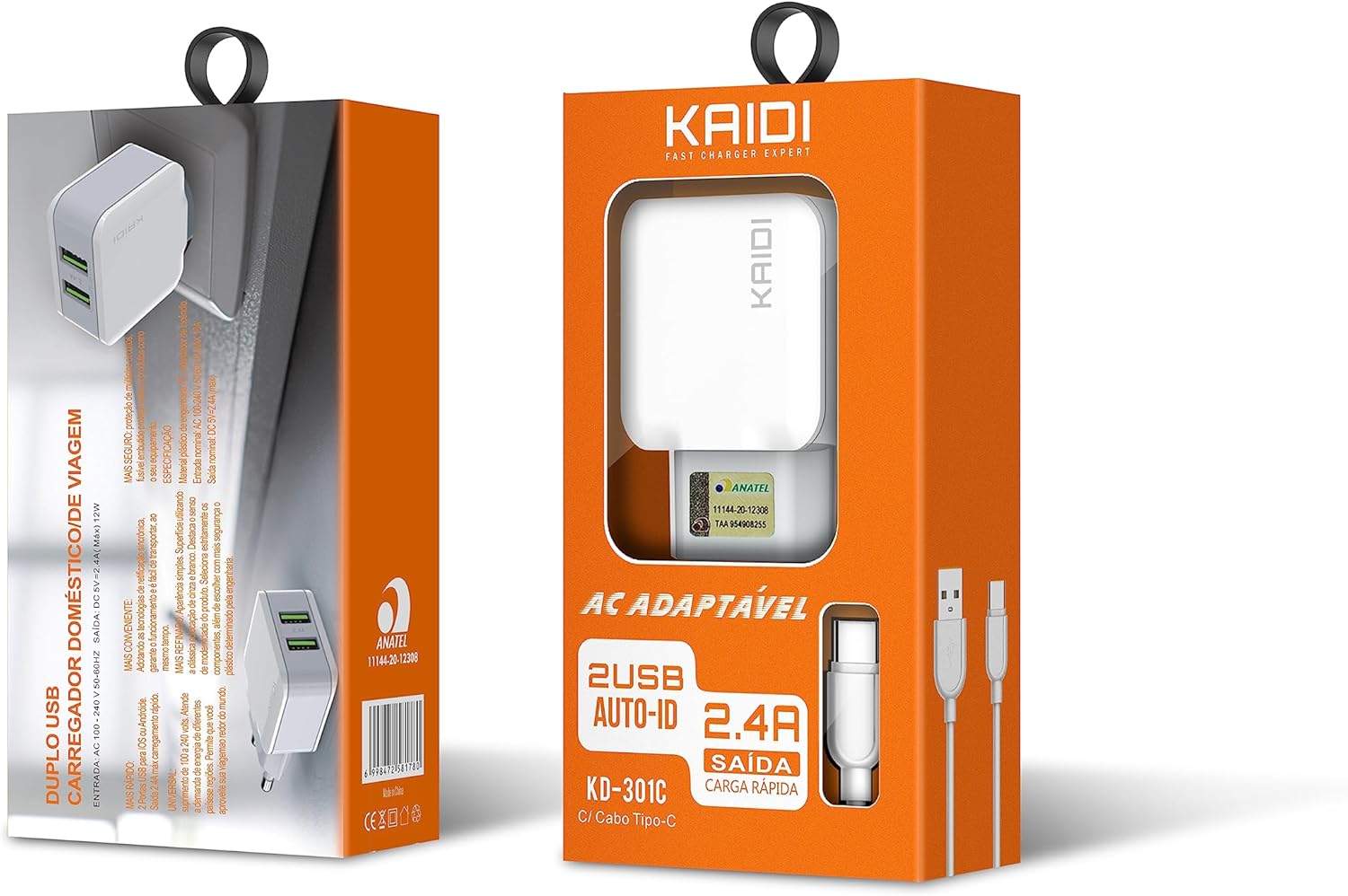 Carregue seus aparelhos de uma forma muito mais rápida com o Carregador Duplo USB Kaidi KD-301C. Ideal para celulares, tablets, fones de ouvidos e muitos outros aparelhos com carregamento USB