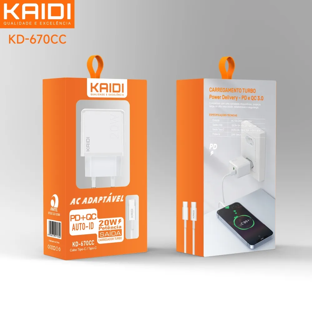 O carregador Kaidi KD-108A é a solução perfeita para quem busca um carregador de alta qualidade e desempenho para dispositivos Apple com entrada Lightning. Com sua saída Tipo-C, o carregador garante uma carga rápida e eficiente, sem danificar a bateria do seu aparelho.