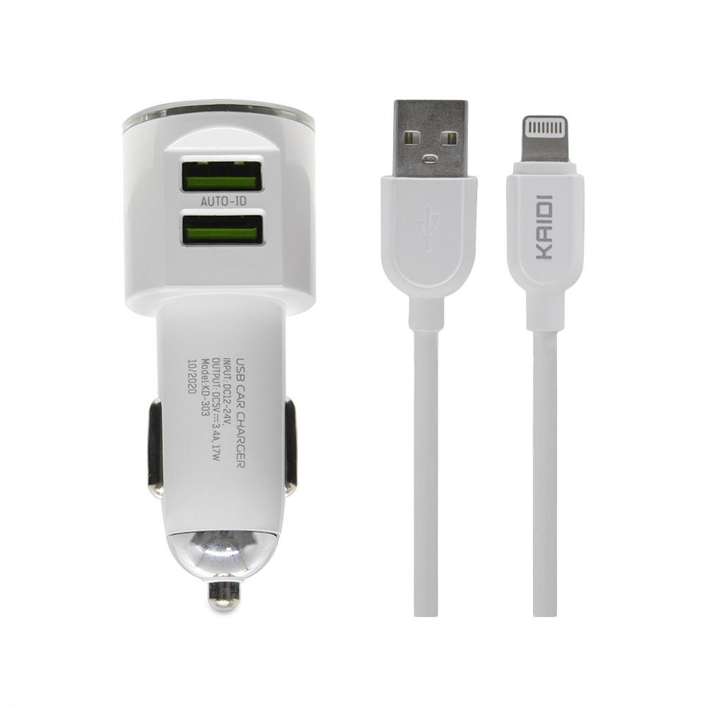 Carregador Veicular Turbo 3.4a 2 Portas USB Kaidi Carregamento Ultra Rápido