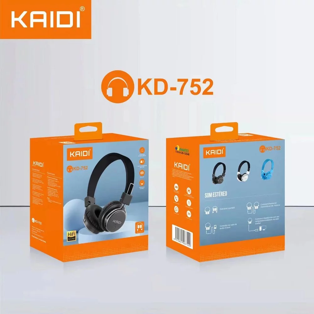 O Fone de ouvido Headset Wireless KD-752 da Kaidi possui tecnologia bluetooth, sendo o seu uso livre de cabos e fios.