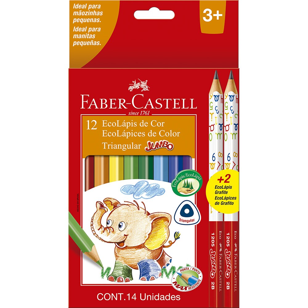 Lápis de Cor EcoLápis Triangular Jumbo 12 Cores + 2 EcoLápis Triangular Jumbo Grafite Faber