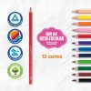 Cores vibrantes! Lápis de madeira, de traço super macio, excelente cobertura e corpo triangular. 12 cores!