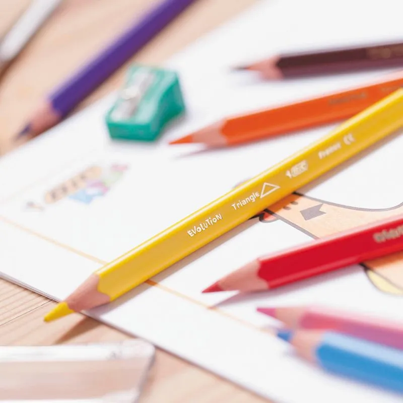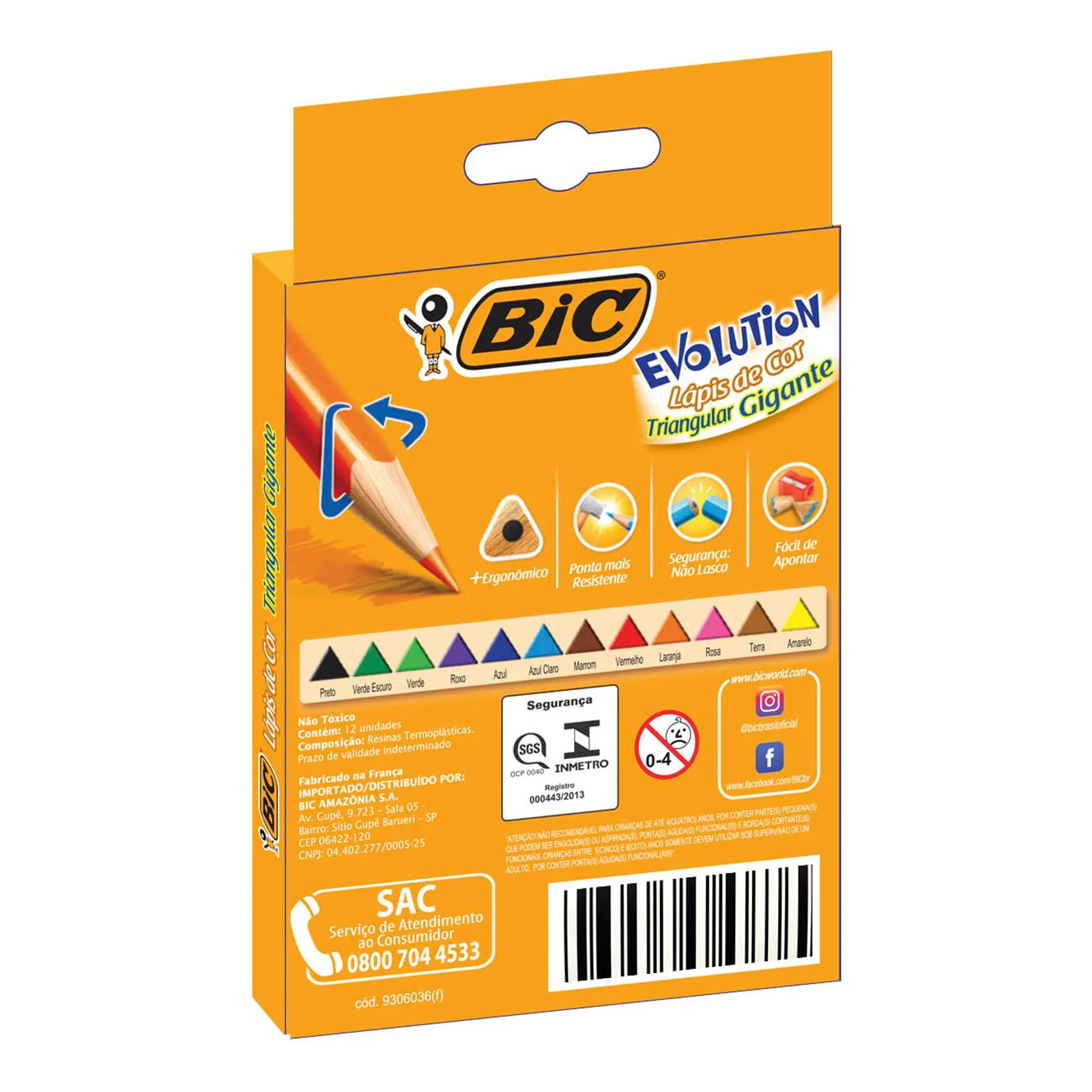 O Lápis de Cor BIC Evolution Triangular Gigante de 12 cores foi especialmente desenvolvido para crianças em fase pré-escolar. Possui ponta super resistente, além de ser um produto atóxico: seguro para os pequeninos. Seu corpo triangular gigante é muito mais ergonômico, facilitando o manuseio e não deixando que o Lápis role pela mesa. Sua mina é macia e fácil de apontar. Suas cores são vivas e intensas, com ótimo poder de cobertura.