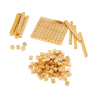 Material dourado destinado ao ensino da matemática, tornando o aprendizado mais fácil de ser assimilado pela criança por apresentar elementos concretos representando unidade, dezena e centena. possibilita a realização das quatro operações básicas da matemática.